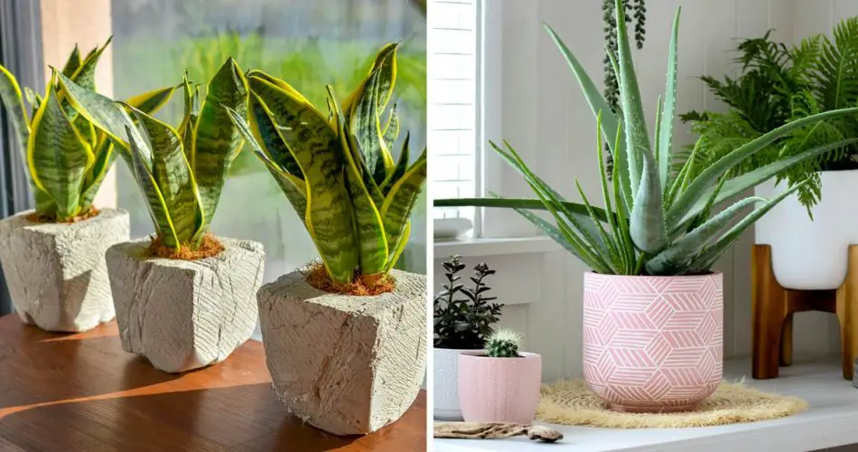 Sansevieria Trifasciata , também conhecida como língua da sogra ou da faca, produz folhas em forma de tiras que crescem verticalmente. Eles são verdes com listras verde-escuras e amarelas. Esta planta é particularmente resistente e excelente para crescer em um apartamento. Ela não precisa de muita água ou sol e é ótima em filtrar o ar de muitas substâncias nocivas. Pode remover benzeno, formaldeído, xileno e tricloroetileno.