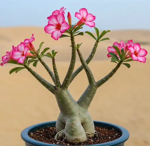 A rosa-do-deserto (Adenium obesum) é uma planta bela e resistente, conhecida por suas flores vistosas e pelo tronco grosso e inchado chamado caudex. No entanto, ao comprar uma planta de rosa-do-deserto, é crucial transplantá-la corretamente para garantir seu desenvolvimento saudável. Neste guia, mostraremos a maneira correta de transplantar uma rosa-do-deserto, preparar o substrato ideal e cuidar da planta para garantir um crescimento vigoroso e floração abundante.