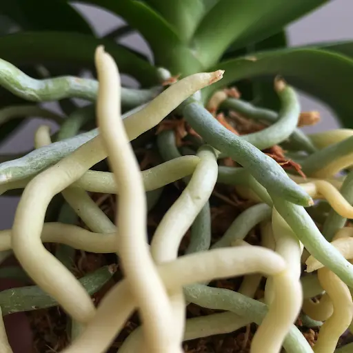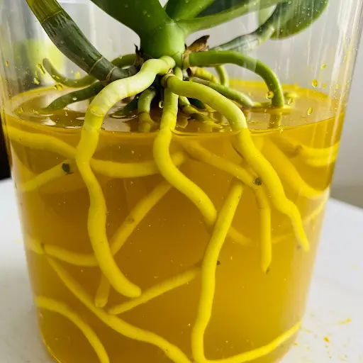 Antes de regar ou fertilizar sua orquídea, verifique sempre a cor das raízes. Raízes saudáveis devem estar verdes. Se as raízes estiverem brancas ou acinzentadas, a planta precisa de água. No entanto, se as raízes ainda estiverem verdes, evite regar, pois o excesso de umidade pode causar apodrecimento.