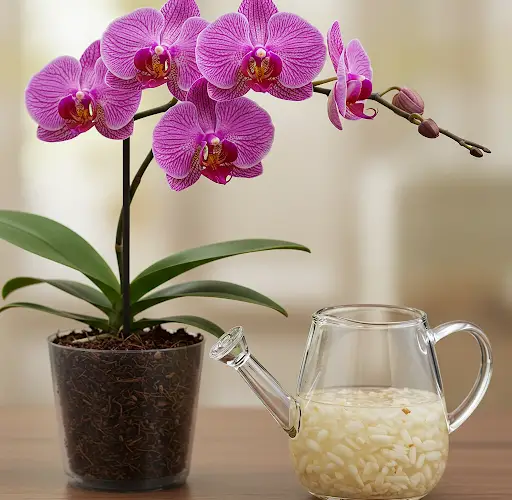 A água de arroz é rica em vitaminas naturais, aminoácidos e minerais que ajudam a estimular o crescimento das raízes, tornando-a um fertilizante orgânico ideal para orquídeas.