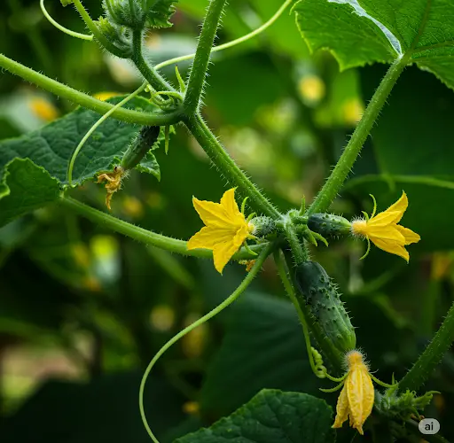 Apoio à polinização – Se você cultivar pepinos ao ar livre, atrair polinizadores como abelhas com plantas floridas por perto pode melhorar a frutificação.