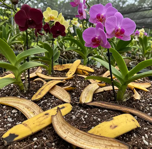 As cascas de banana são ricas em nutrientes, especialmente potássio orgânico, que desempenha um papel crucial na promoção do crescimento de flores e brotos. Além disso, o potássio aumenta a resistência da planta à seca, tornando as orquídeas mais resilientes em diferentes condições.