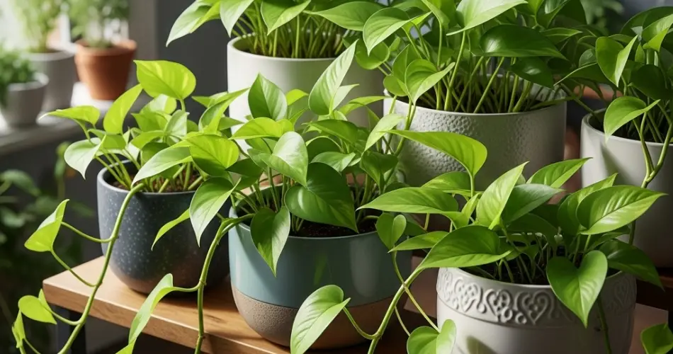 Purificação do ar: Uma planta pothos saudável melhora a qualidade do ar interior ao filtrar toxinas.