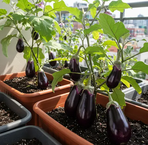 Economia de espaço – As berinjelas podem ser cultivadas em espaços menores, como varandas, pátios ou até mesmo parapeitos de janelas.