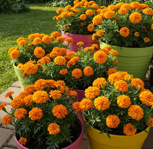 As calêndulas francesas são especialmente adequadas para vasos devido ao seu tamanho compacto.