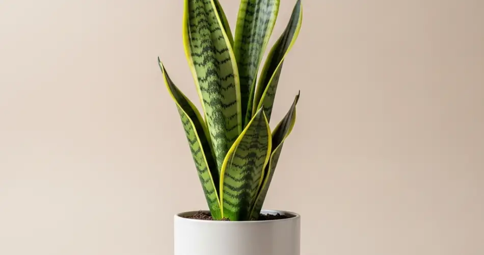 Sansevieria trifasciata ‘Laurentii’: Folhas verdes clássicas com bordas amarelas.