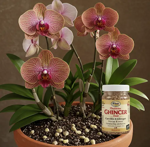 Para estimular a orquídea a desenvolver novas raízes e brotos, um poderoso estimulante natural pode ser preparado com alho e gengibre. Esses dois ingredientes são amplamente reconhecidos por sua capacidade de estimular a germinação, promover o desenvolvimento das raízes e proteger as plantas de bactérias e fungos nocivos.