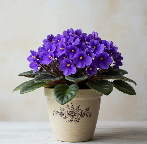 Hoje, vou começar com as minhas lindas violetas africanas. Elas simplesmente não param de florescer! Estão em plena floração desde o outono, produzindo novos botões constantemente enquanto as flores mais antigas murcham graciosamente.