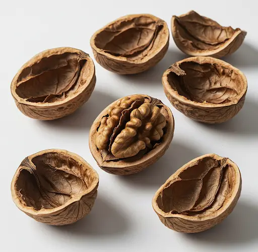 - Pegue três cascas de noz grandes (ou quatro, se forem pequenas) e coloque-as em um frasco de vidro de meio litro.