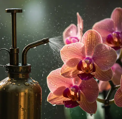 - Isso ajuda a remover a poeira, melhora a fotossíntese e permite que as orquídeas absorvam nutrientes através da folhagem.