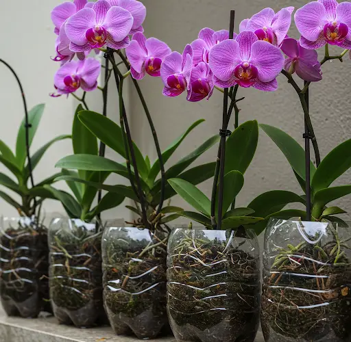 Em vez de comprar um vaso novo, considere reciclar uma garrafa plástica grande descartada e transformá-la em um vaso de orquídeas estiloso e funcional. Este método sustentável não só ajuda a reduzir o desperdício, como também proporciona uma maneira única e criativa de cultivar sua orquídea.