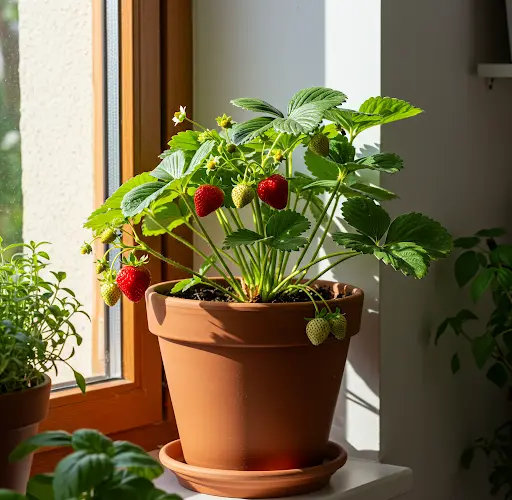 Colha os morangos quando estiverem completamente vermelhos, pois eles continuarão a amadurecer depois de colhidos. Morangos cultivados em casa costumam ter um sabor mais doce do que os comprados no mercado, o que os torna perfeitos para consumo in natura ou para uso em sobremesas.
