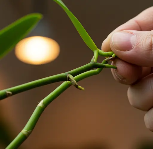 Se você tiver um ramo florido que já desabrochou completamente e perdeu todas as flores, não o descarte. Em vez disso, examine-o cuidadosamente. Algumas partes dele ainda podem ser viáveis para propagação. Corte a parte que já floresceu, mantendo as seções que ainda têm potencial para brotar. Essas seções contêm nós que podem se desenvolver em novas orquídeas.