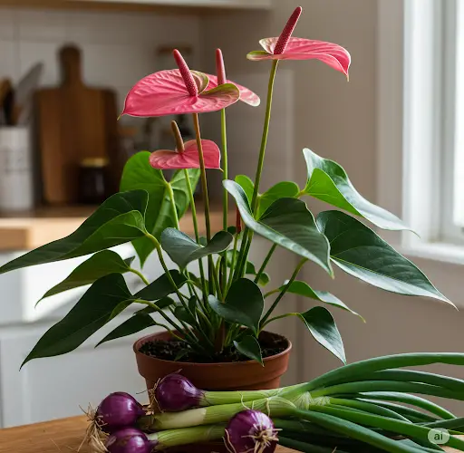 Por que as cebolas ajudam os antúrios a crescer e florescer?