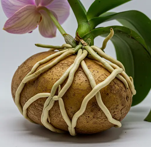 As batatas são ricas em nutrientes, incluindo amido, vitaminas e minerais, que podem estimular o crescimento de orquídeas keiki (orquídeas bebês). Os compostos naturais presentes nas batatas ajudam a ativar os nós dormentes na haste floral, estimulando a formação de novas plantas sem a necessidade de hormônios de crescimento sintéticos.
